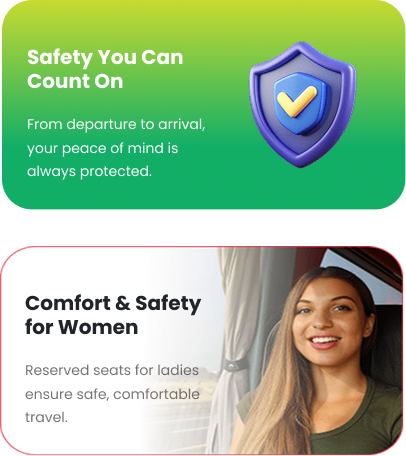 We ensure a safe and comfortable journey by offering dedicated, exclusively reserved seating options for our women passengers.